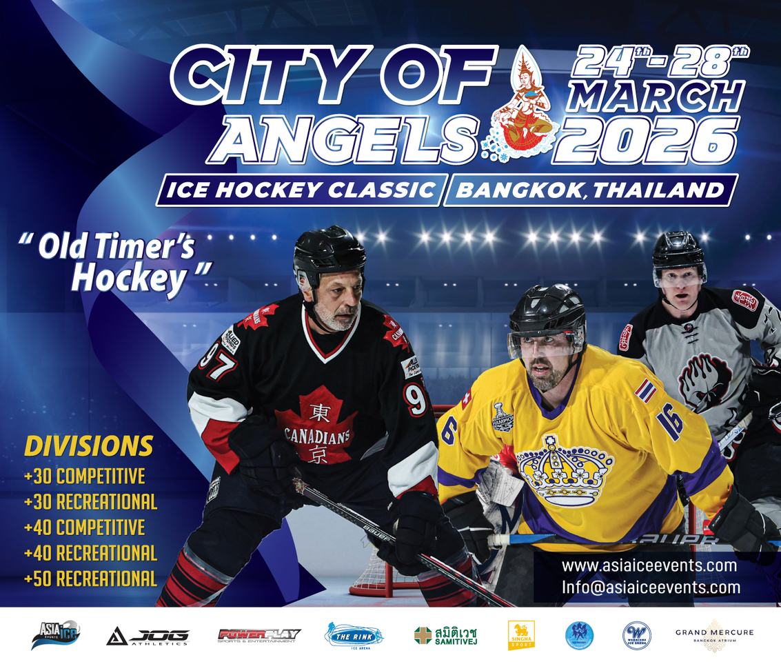 It's back ....the 2026 City of Angels - largest 'Old Timer's Hockey' tournament in Asia returns to Bangkok, Thailand from March 24-28. A new Over 50 division has been created for those born 1976 or earlier.